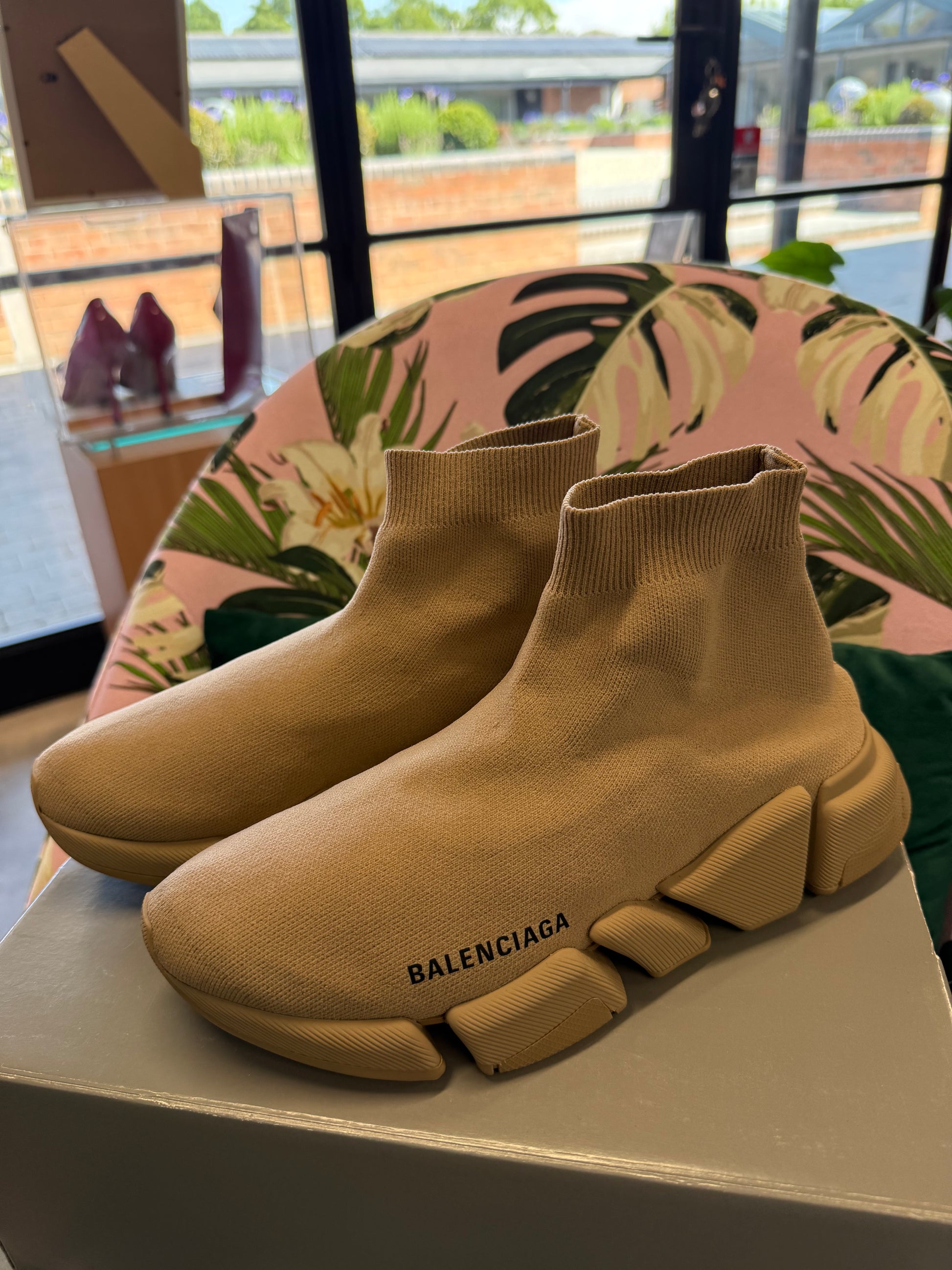 Balenciaga Beige Speed 2.0 Knit Sneakers – UK 39 – With Box