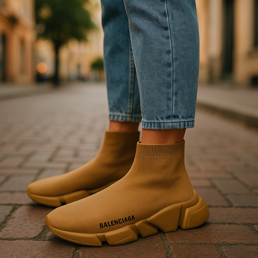 These Balenciaga Speed 2.0 sneakers in beige are a modern must-have, blending futuristic design with everyday comfort. Crafted in a stretch-knit sock silhouette, they offer a snug, flexible fit and are set on an ultra-lightweight segmented sole for maximum cushioning and movement.