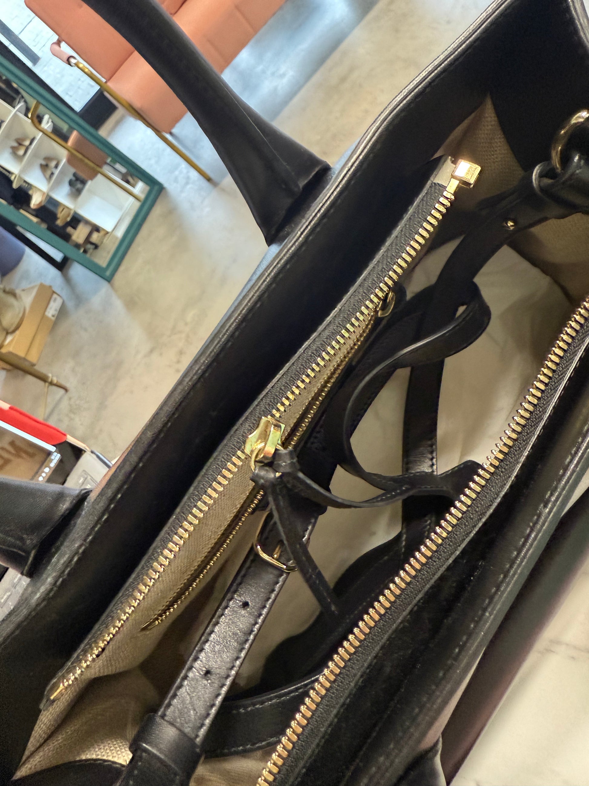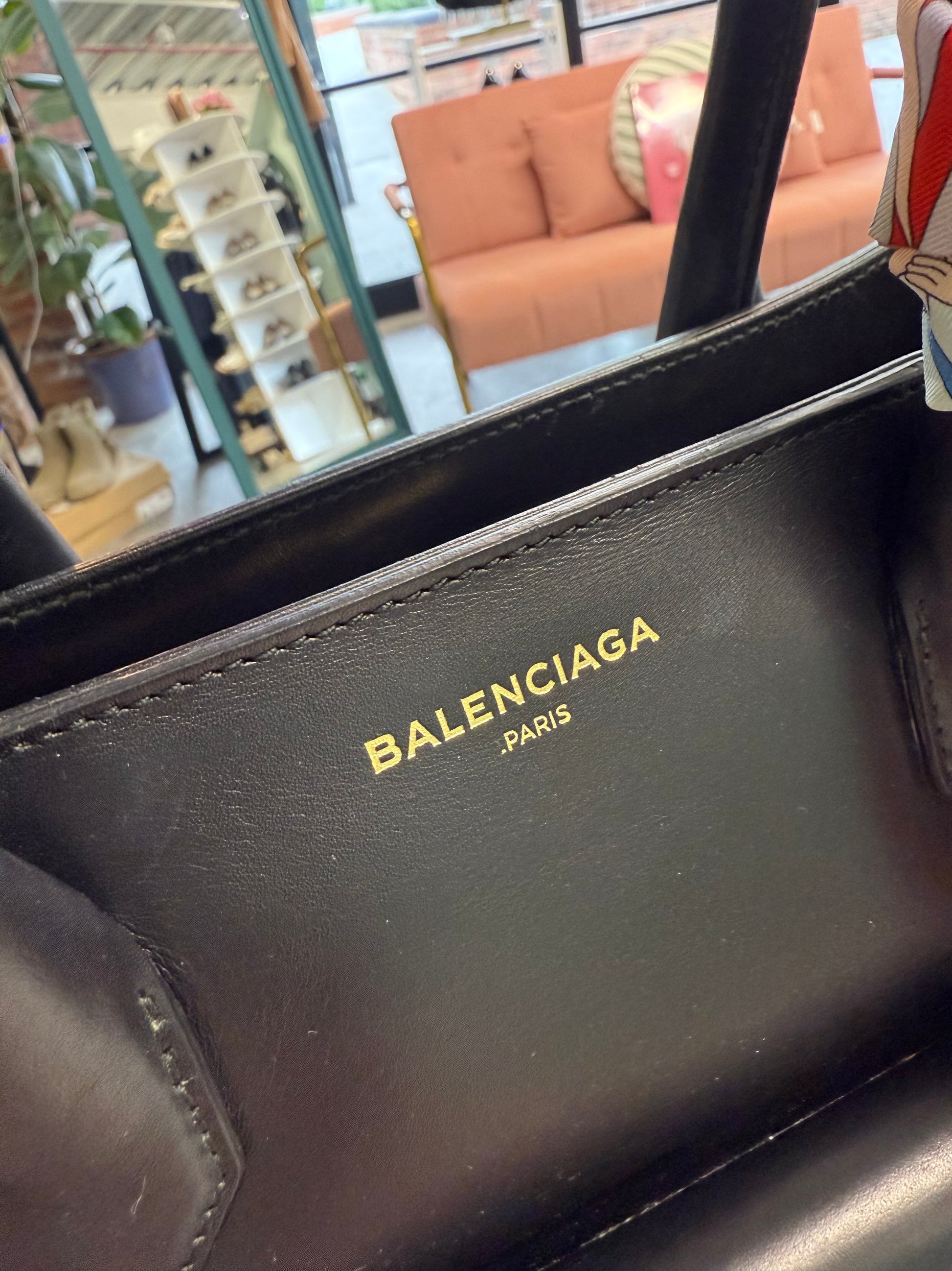 Balenciaga Ville Top Handle Bag – Black Calfskin with Scarf Accent