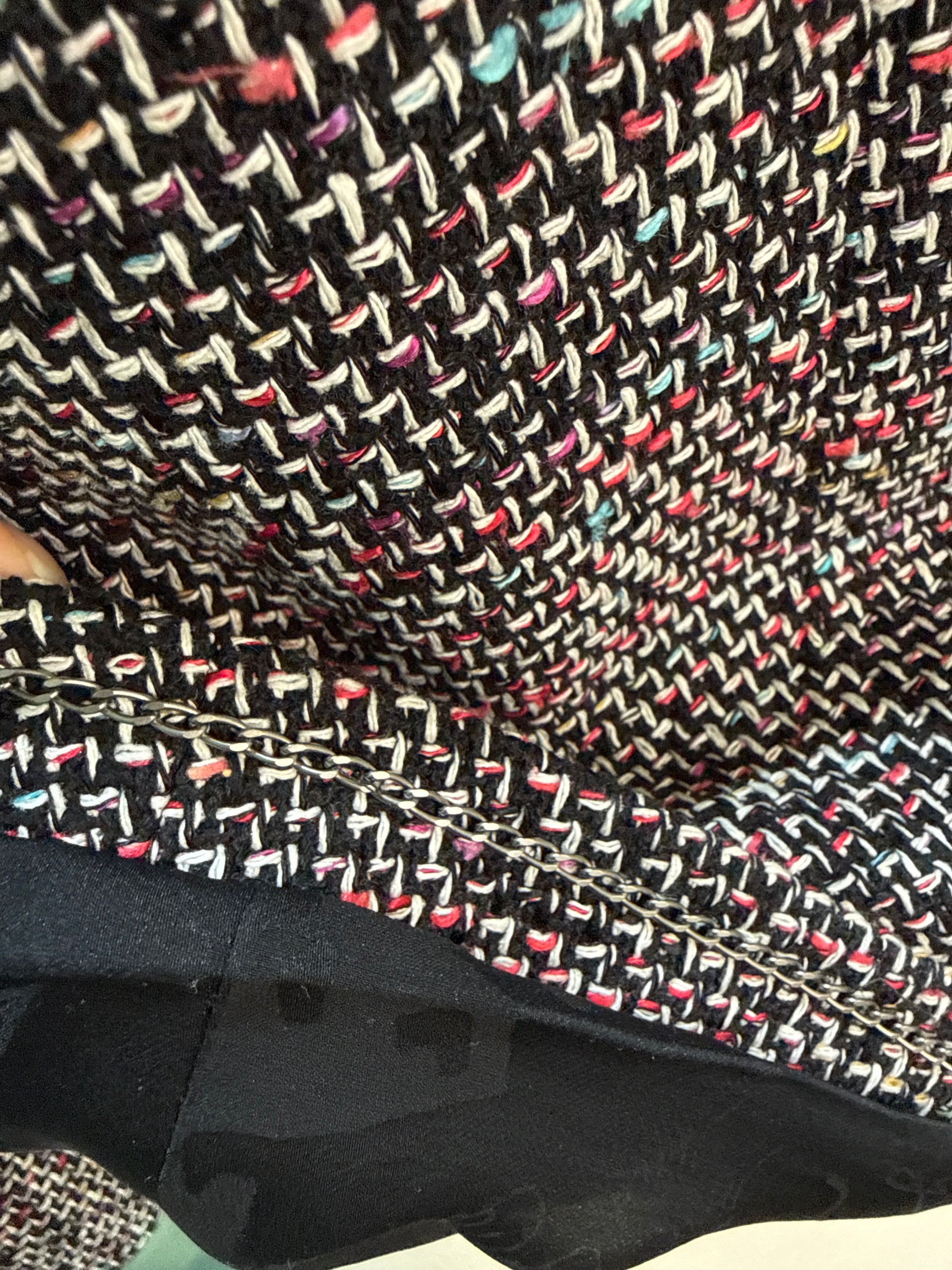 The multicolour threading woven through the black base gives this piece depth and texture — it’s classic but with a playful, modern twist. The frayed edging softens the structure beautifully and gives it that instantly recognisable Chanel aesthetic.