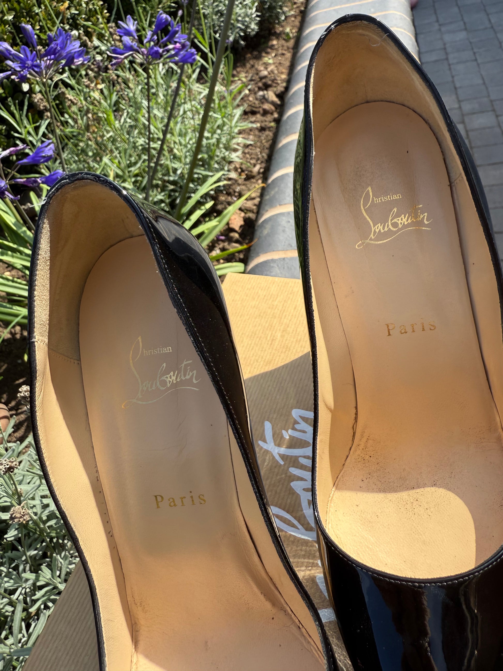 Christian Louboutin Black Patent So Kate Heels – UK 39.5 Good Preloved Condition with Box