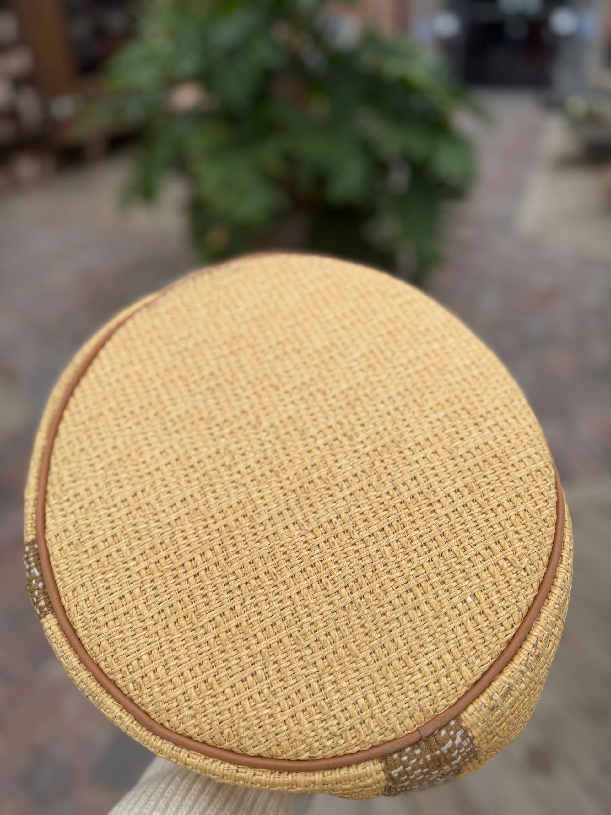 This chic Hermès Cabas tote is crafted from durable woven straw-toned canvas with contrasting textured handles running the full length of the bag for a refined yet casual look. Designed for effortless everyday wear, it features a spacious open interior and practical exterior pockets, perfect for summer outings or relaxed weekends.