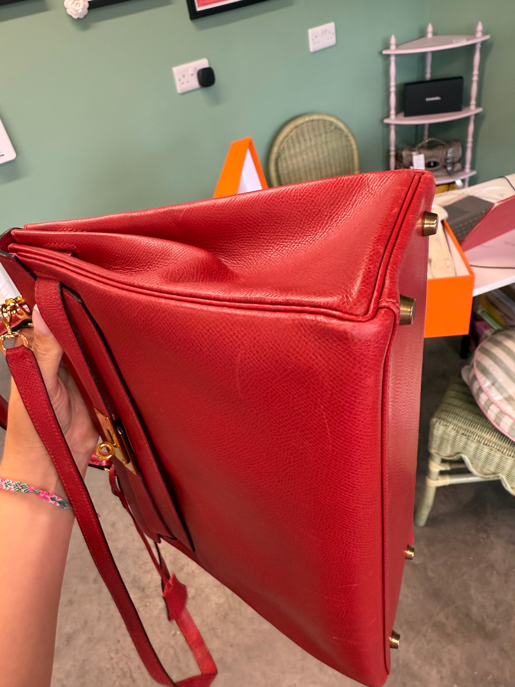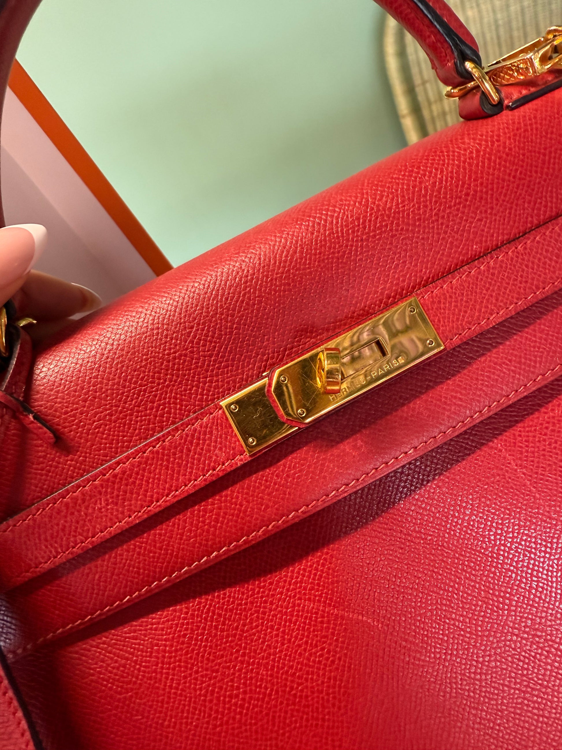 Hermès Kelly 32 Retourne in Rouge H – 1990 Date Stamp – Excellent Preloved Condition with Box