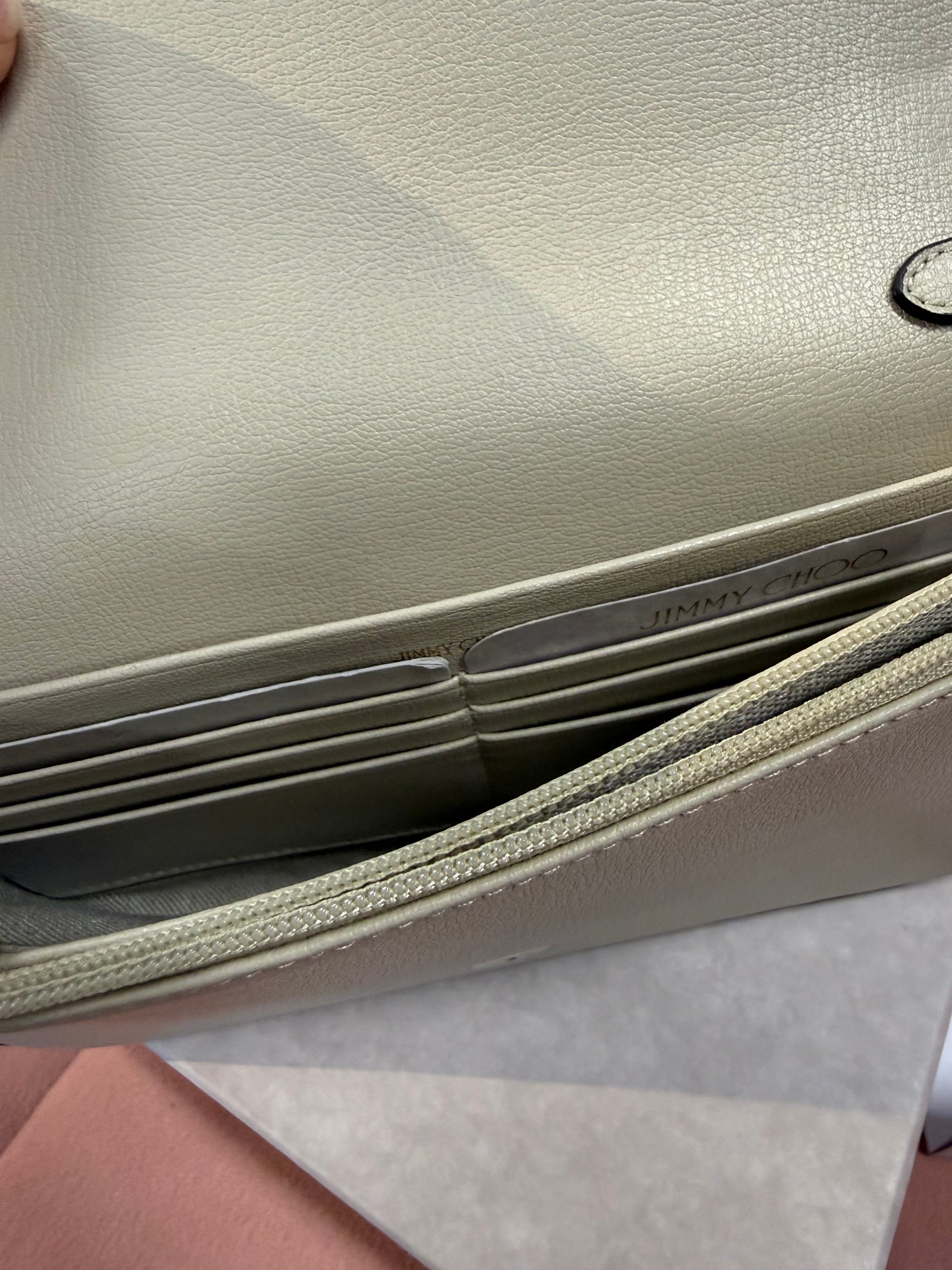 A beautifully elegant Jimmy Choo bag in excellent pre-loved condition, crafted in smooth cream leather with sleek gold-tone hardware and signature JC emblem to the front. The exterior looks stunning with minimal signs of gentle previous use, the structure remains lovely and firm, and the chain strap is bright and shiny. The flap sits neatly and overall it presents beautifully.