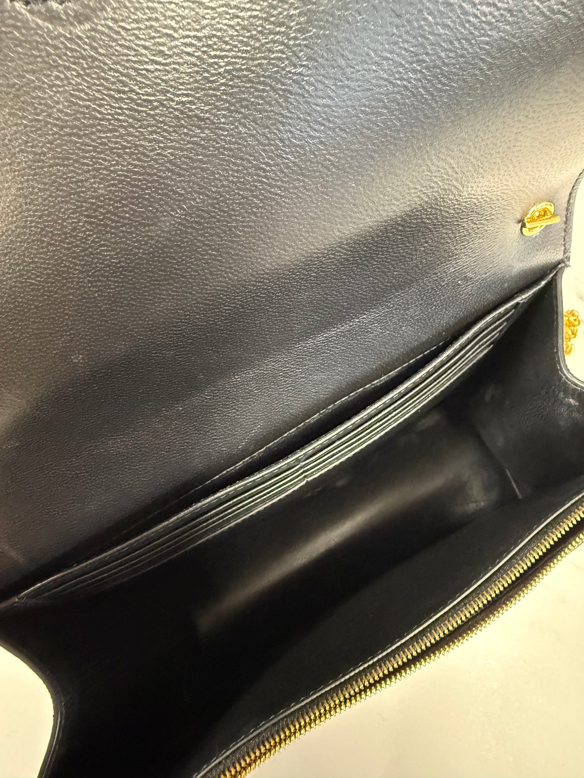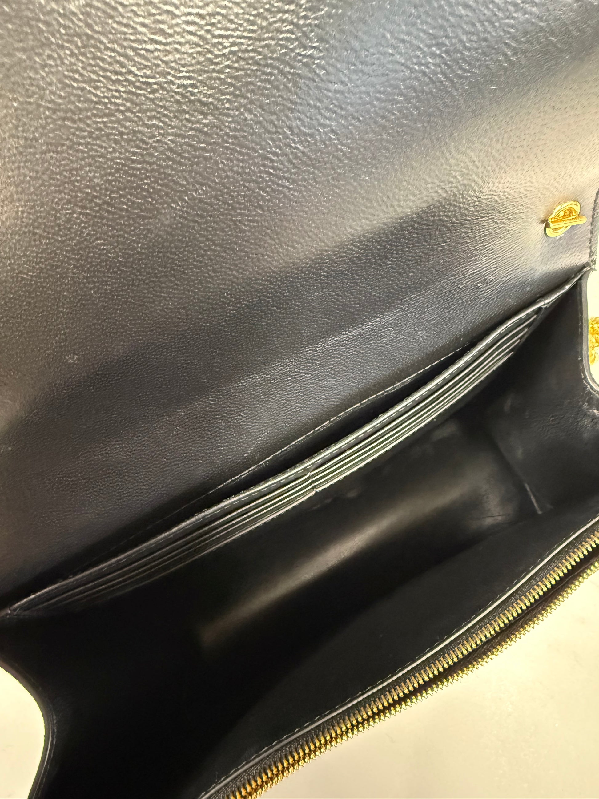 The leather remains beautifully structured with minimal signs of wear. Hardware is bright with light, natural hairline marks consistent with gentle use.