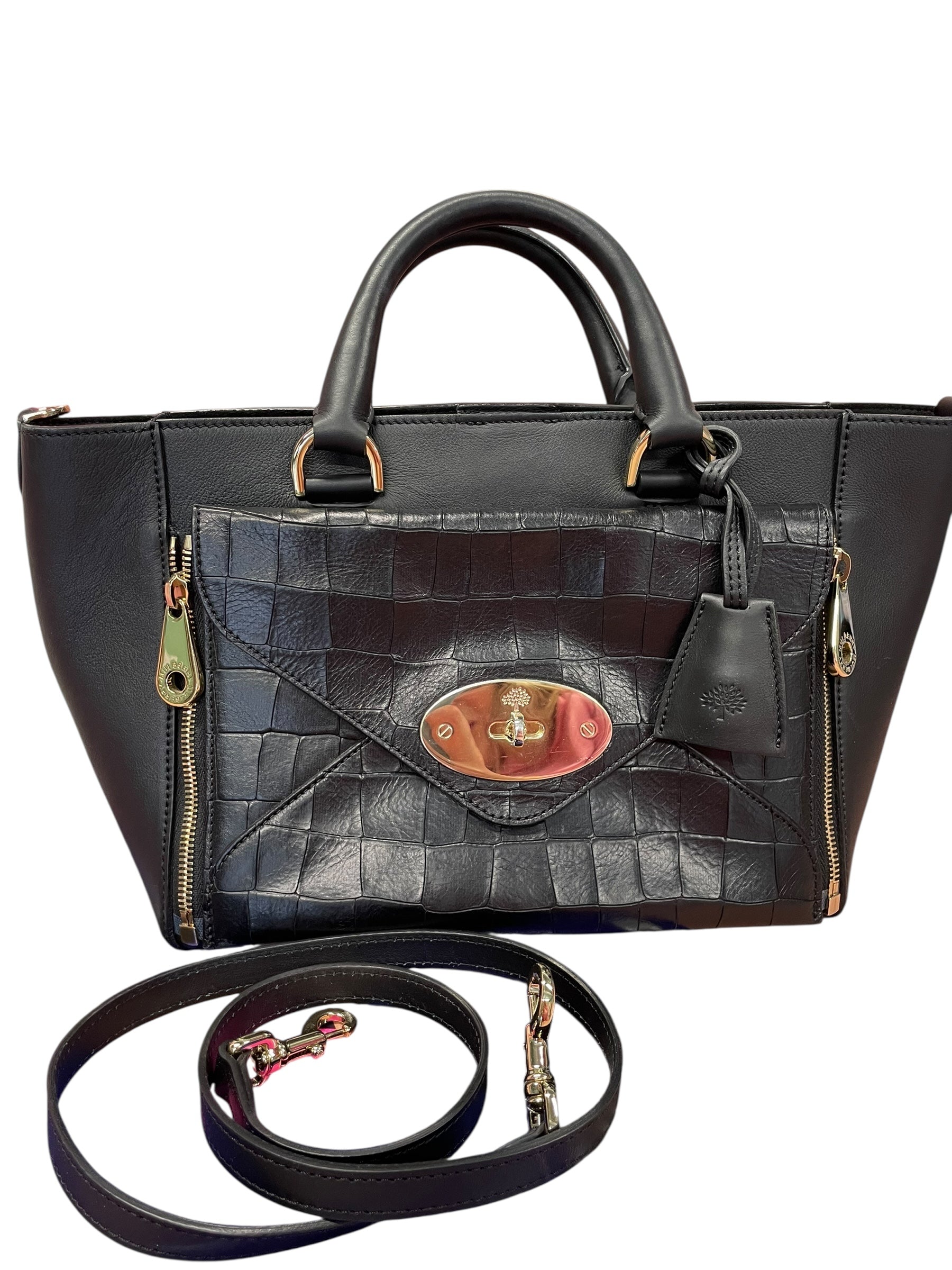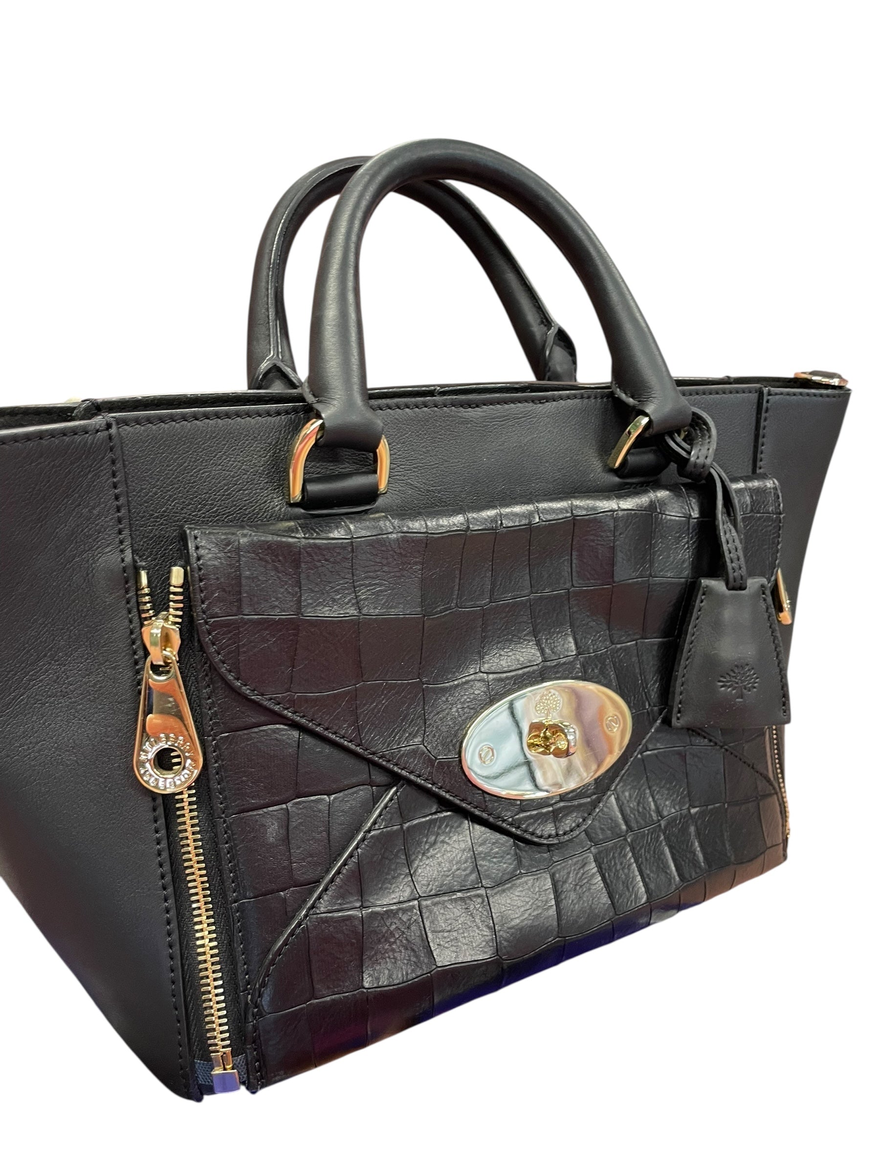 Mulberry Willow Tote in Black with Croc-Embossed Leather – Excellent Preloved Condition