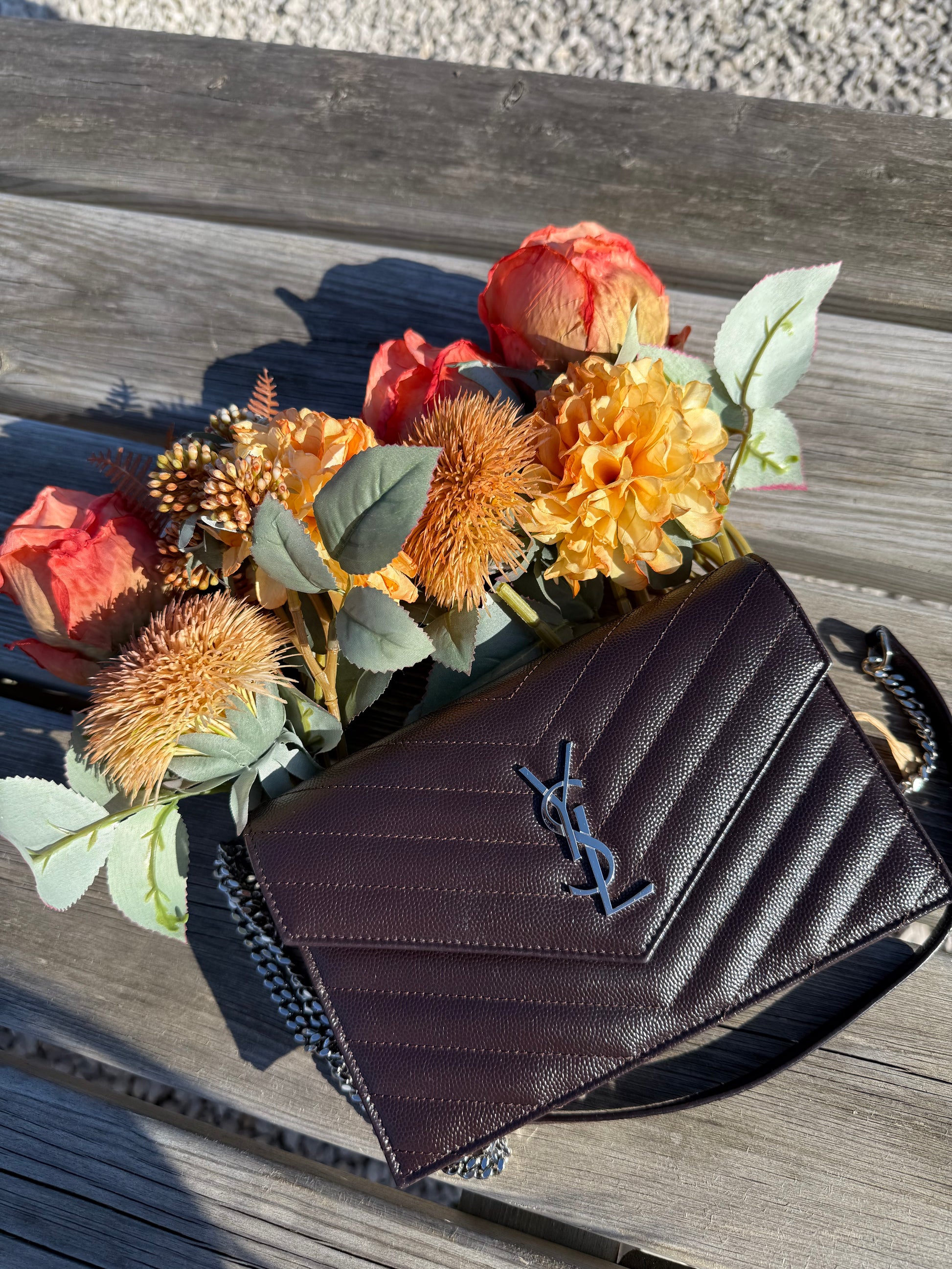 Saint Laurent Cassandra Chain Wallet- chocolate brown