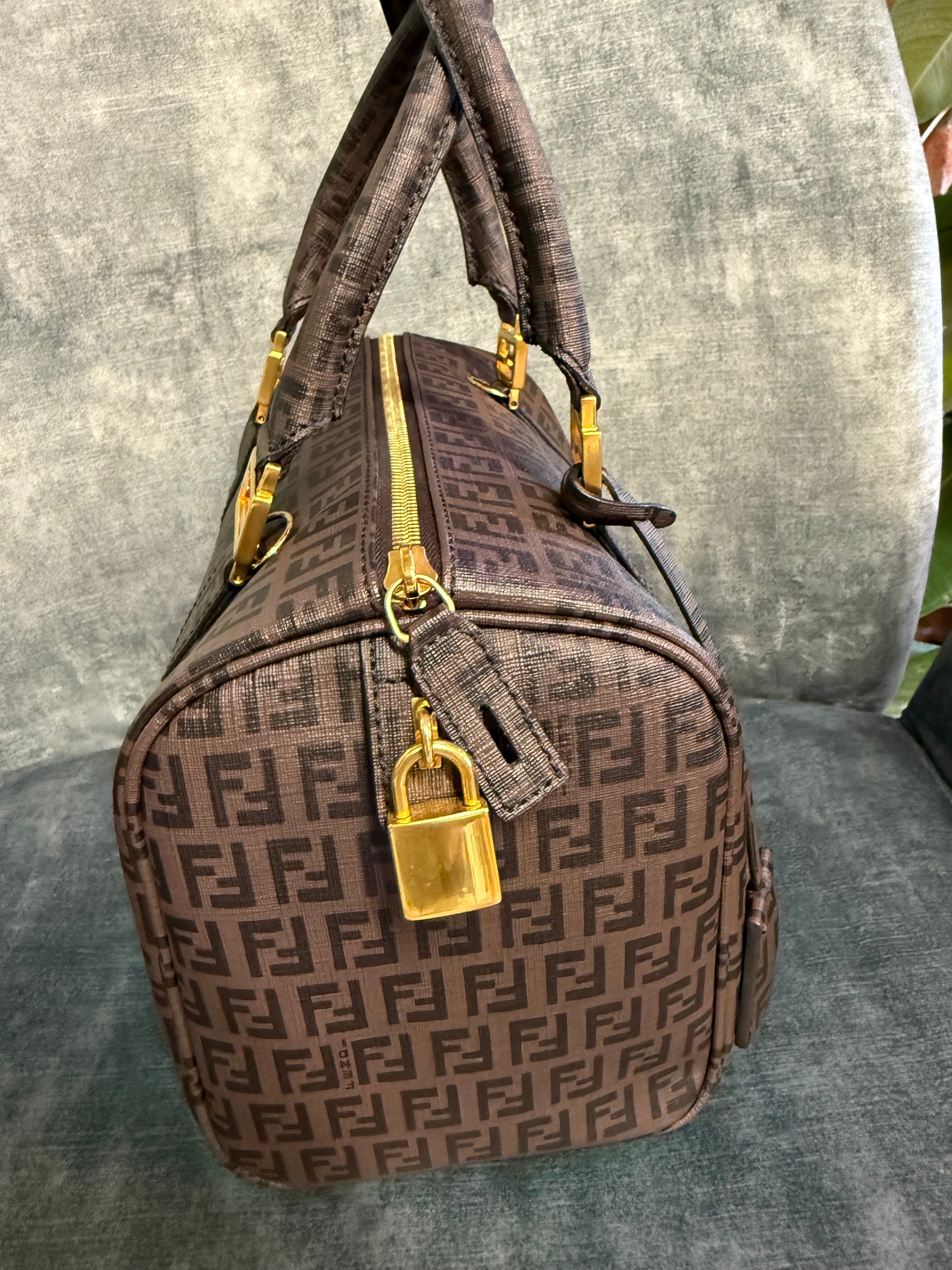 Fendi Zucca Boston Bag – Brown FF Canvas with Gold Hardware