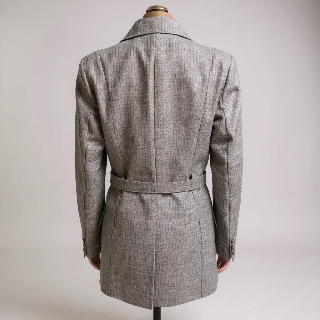 The photo shows the jacket as lighter but it is a textured navy colour. Valentino suit jacket with matching belt. This haven’t is stunning and comes to you fully lined and in a fine wool tweed